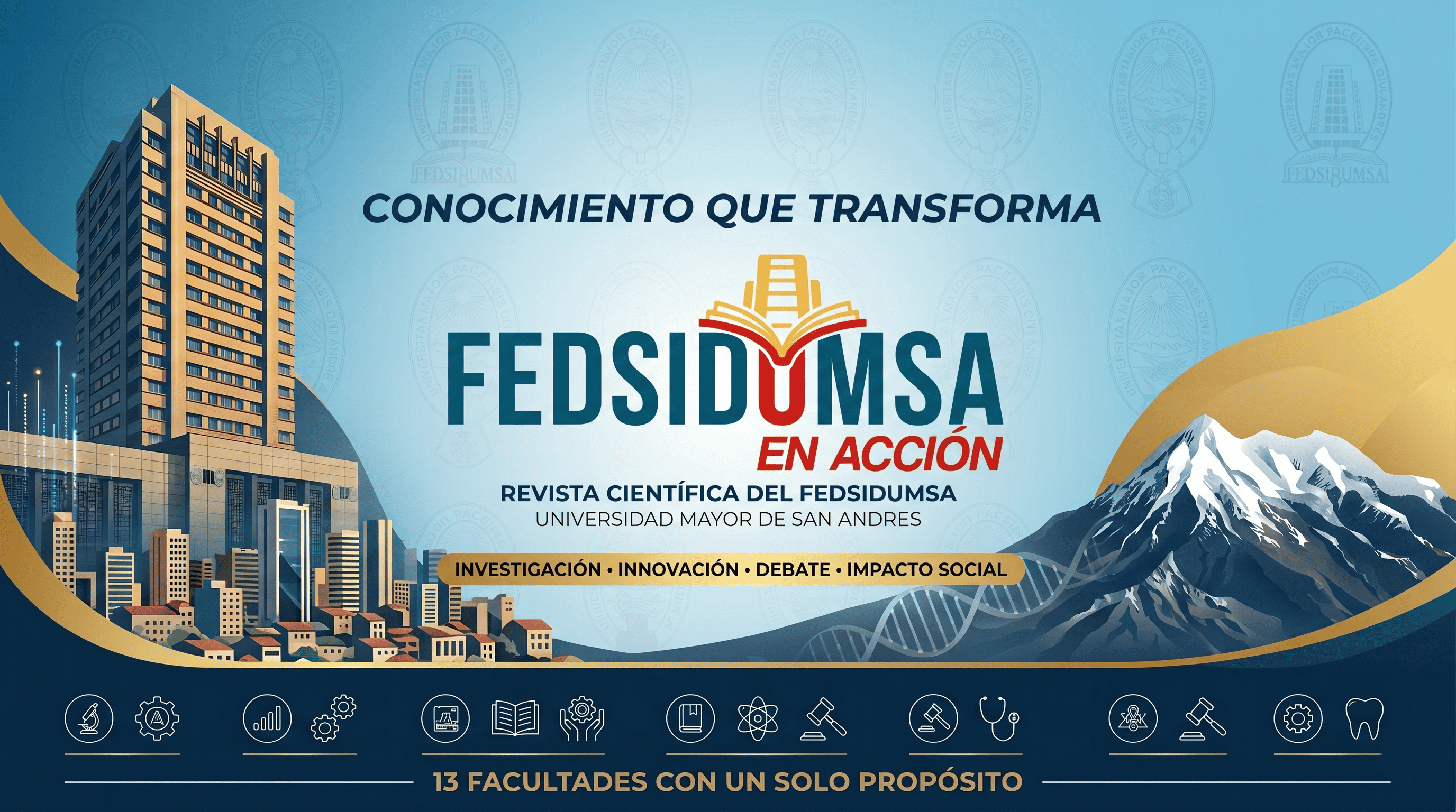 La Revista FEDSIDUMSA en Acción es el órgano académico, científico y cultural oficial de la Federación Sindical de Docentes de la Universidad Mayor de San Andrés (UMSA). Concebida como un espacio de encuentro intelectual, su propósito fundamental es visibilizar, articular y difundir la vasta producción intelectual generada por la comunidad docente de nuestra casa superior de estudios. La revista se erige como una plataforma para el debate riguroso, la innovación pedagógica y la transferencia de conocimientos orientada al desarrollo social, tecnológico y humanístico de Bolivia y la región.
