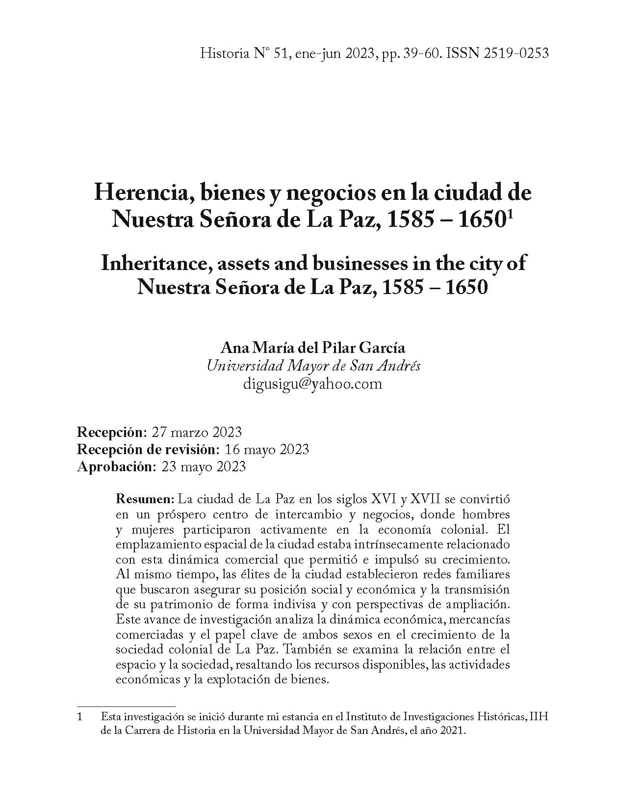 Herencia, bienes y negocios en la ciudad de Nuestra Señora de La Paz, 1585 – 1650