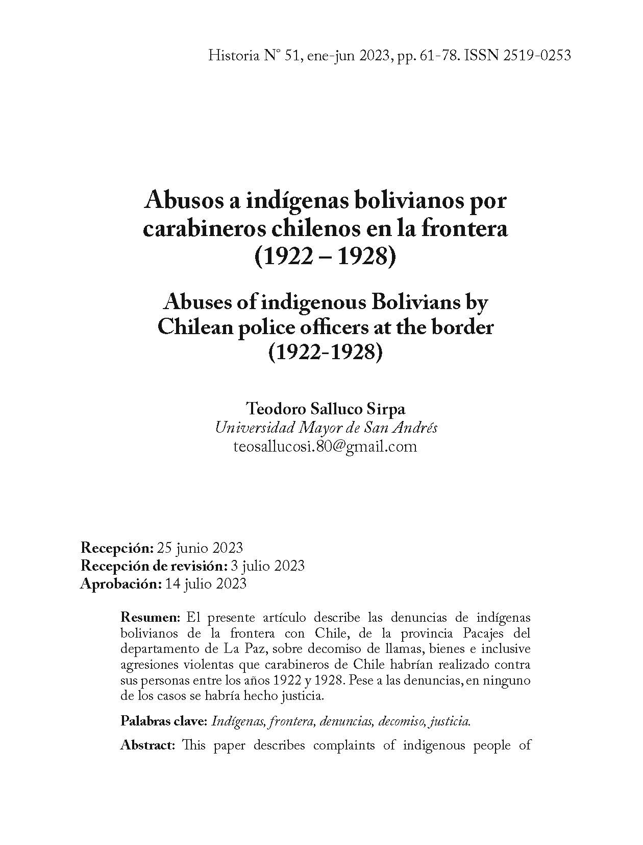 Abusos a indígenas bolivianos por carabineros chilenos en la frontera (1922–1928)