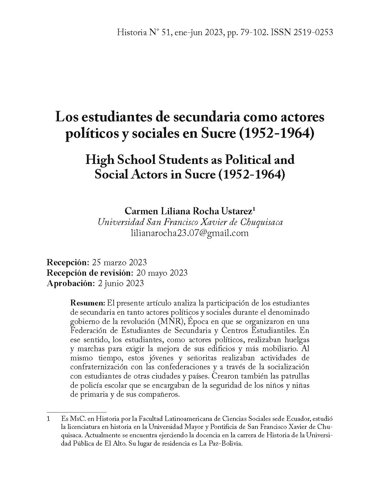 Los estudiantes de secundaria como actores políticos y sociales en Sucre (1952-1964)
