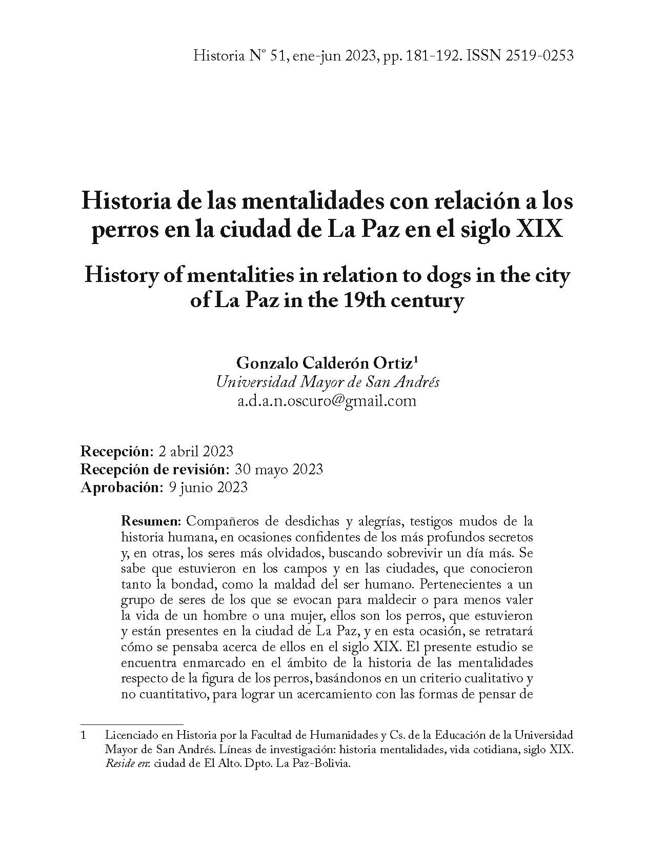 Historia de las mentalidades con relación a los perros en la ciudad de La Paz en el siglo XIX