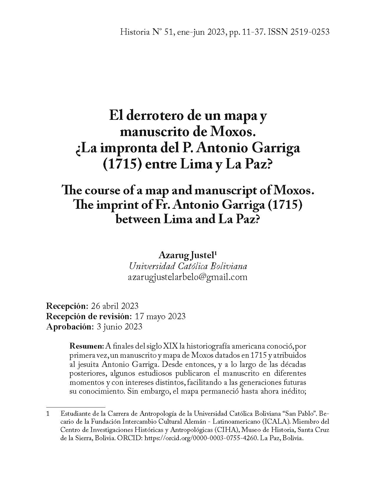 El derrotero de un mapa y manuscrito de Moxos. ¿La impronta del P. Antonio Garriga (1715) entre Lima y La Paz?