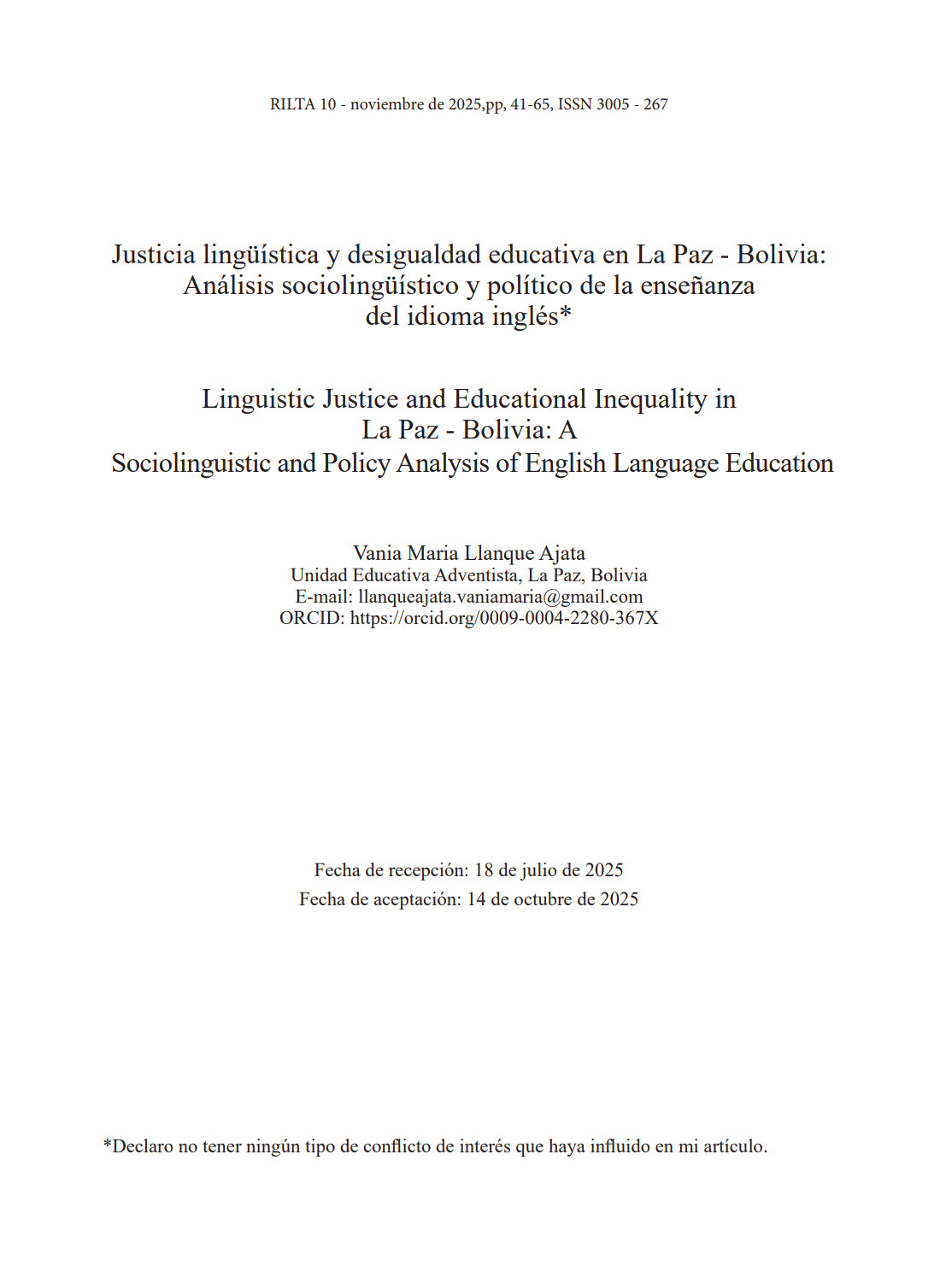 Justicia lingüística y desigualdad educativa en La Paz - Bolivia: Análisis sociolingüístico y político de la enseñanza del idioma inglés