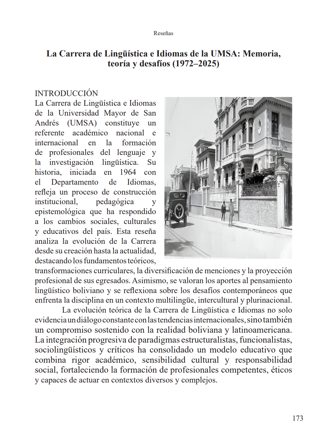 La Carrera de Lingüística e Idiomas de la UMSA: Memoria, teoría y desafíos (1972–2025)