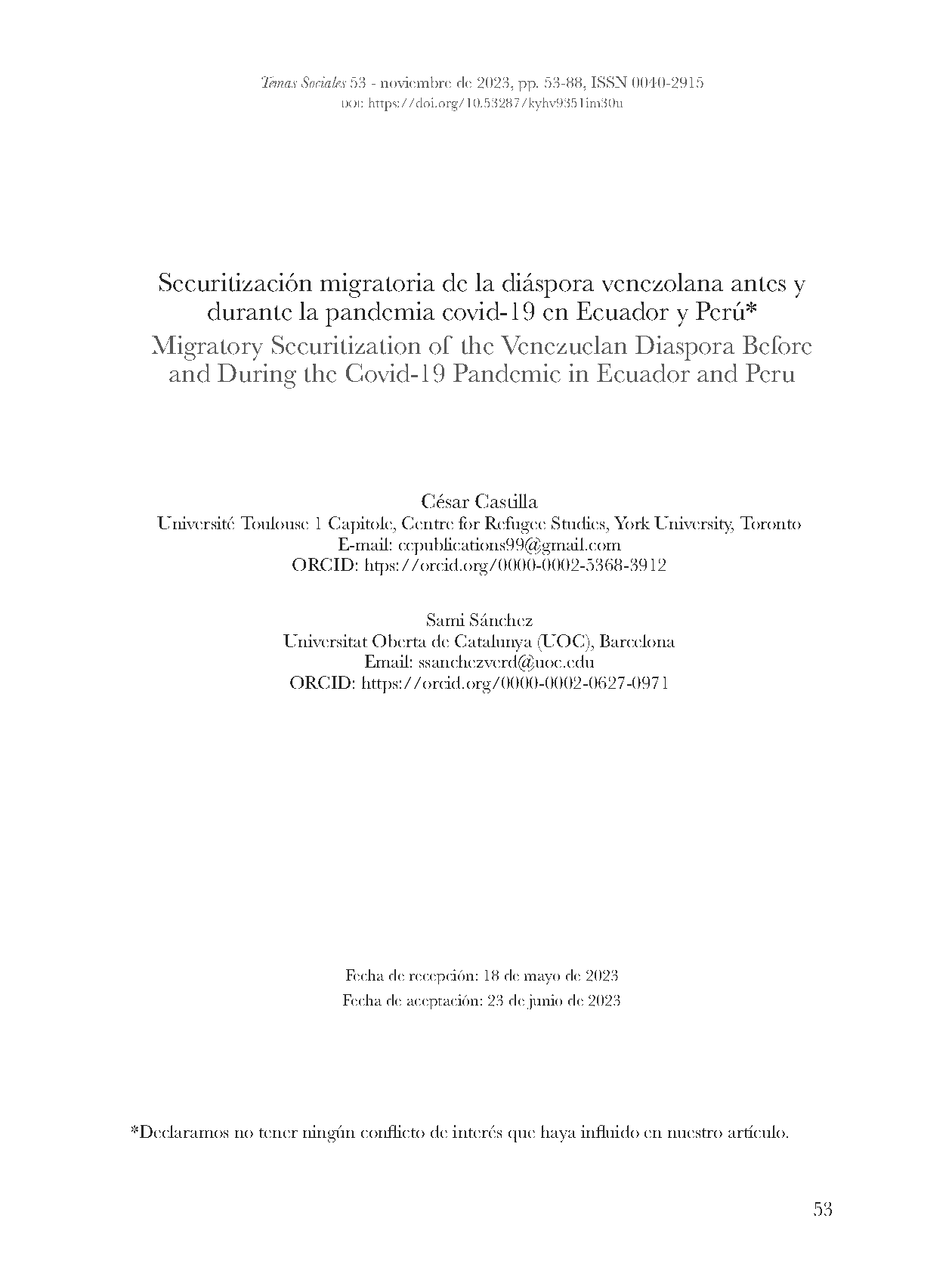 Securitización migratoria de la diáspora venezolana antes y durante la pandemia covid-19 en Ecuador y Perú