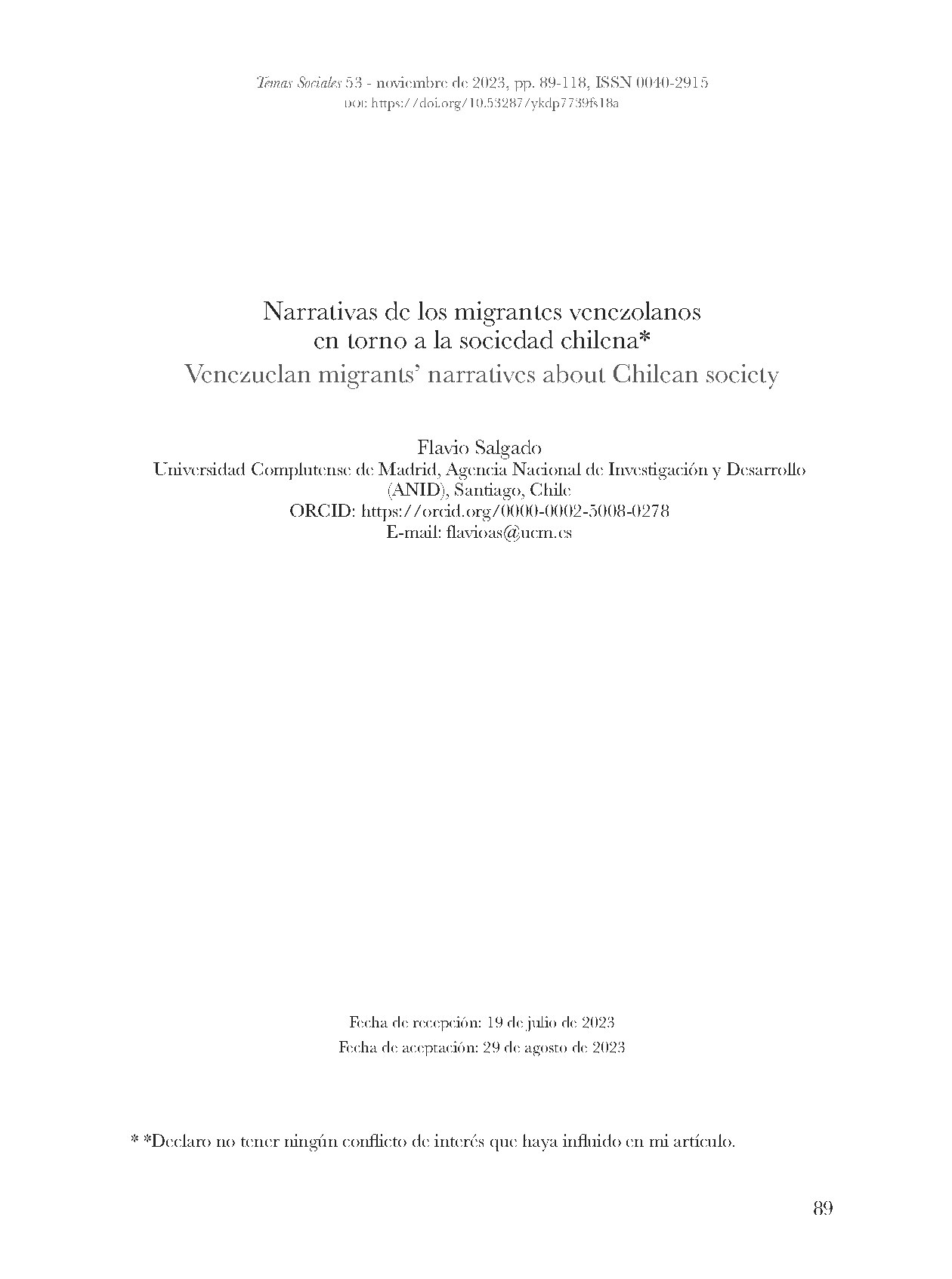 Narrativas de los migrantes venezolanos en torno a la sociedad chilena