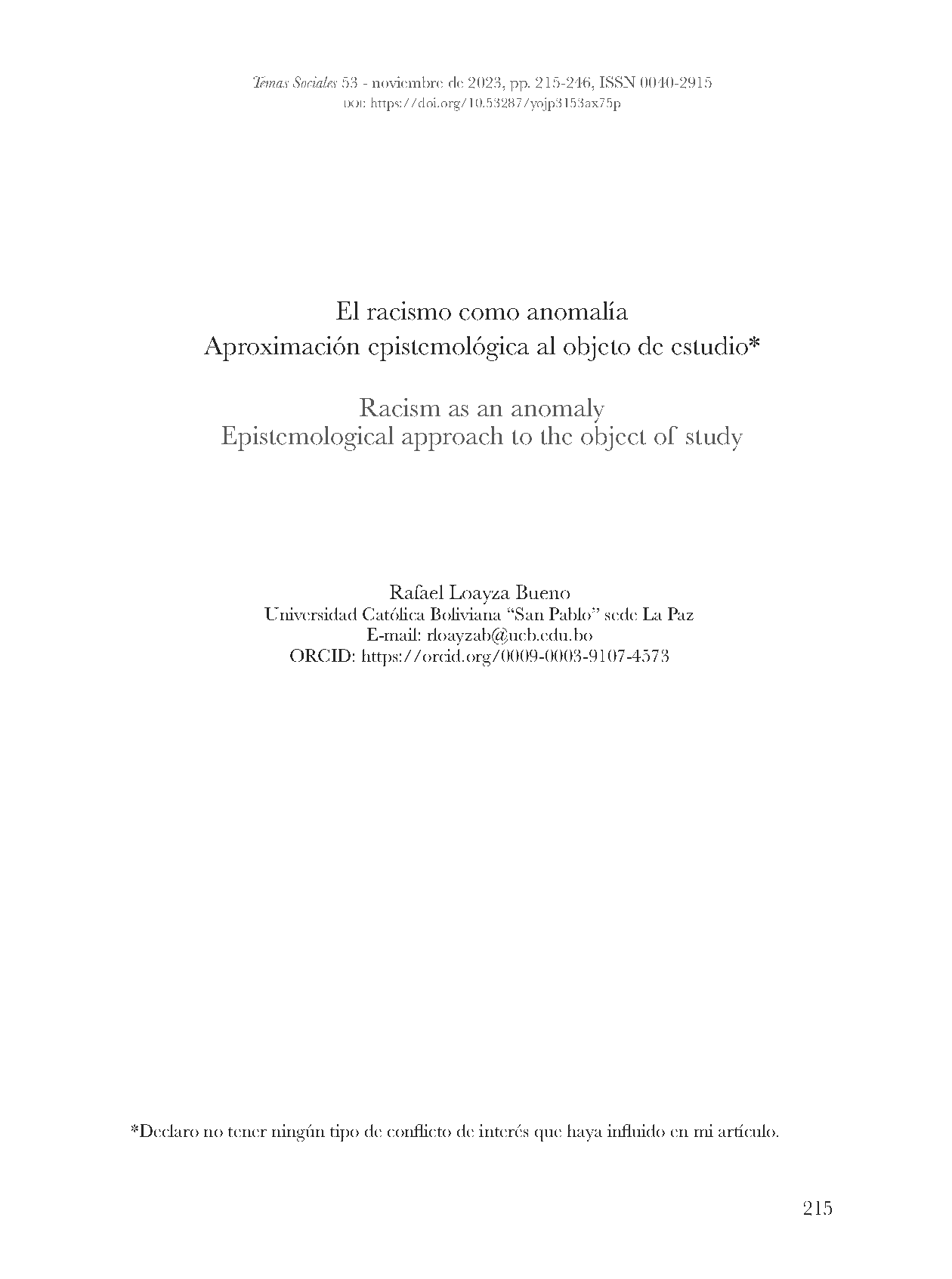 El racismo como anomalía Aproximación epistemológica al objeto de estudio