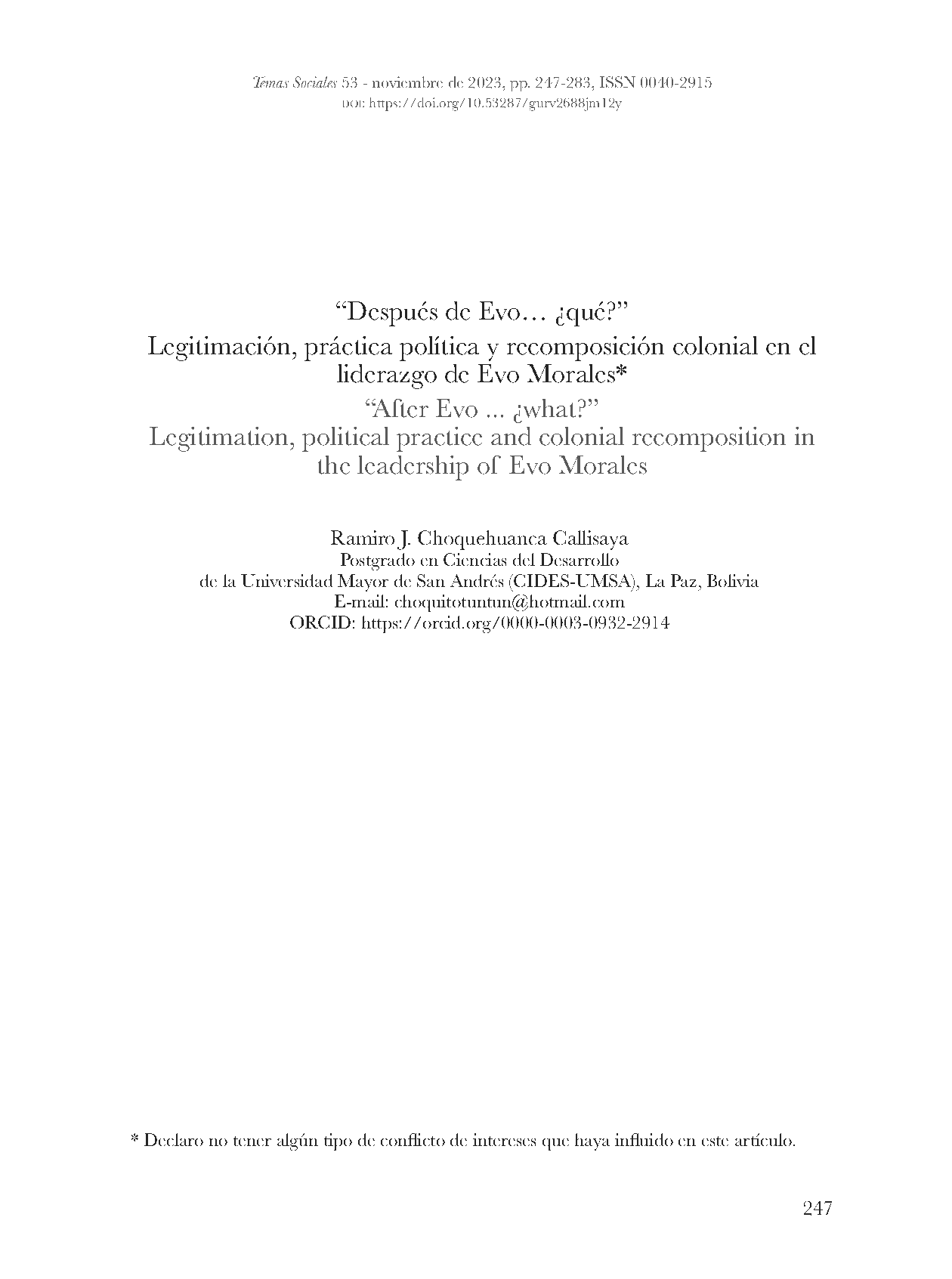 “Después de Evo… ¿qué?” Legitimación, práctica política y recomposición colonial en el liderazgo de Evo Morales