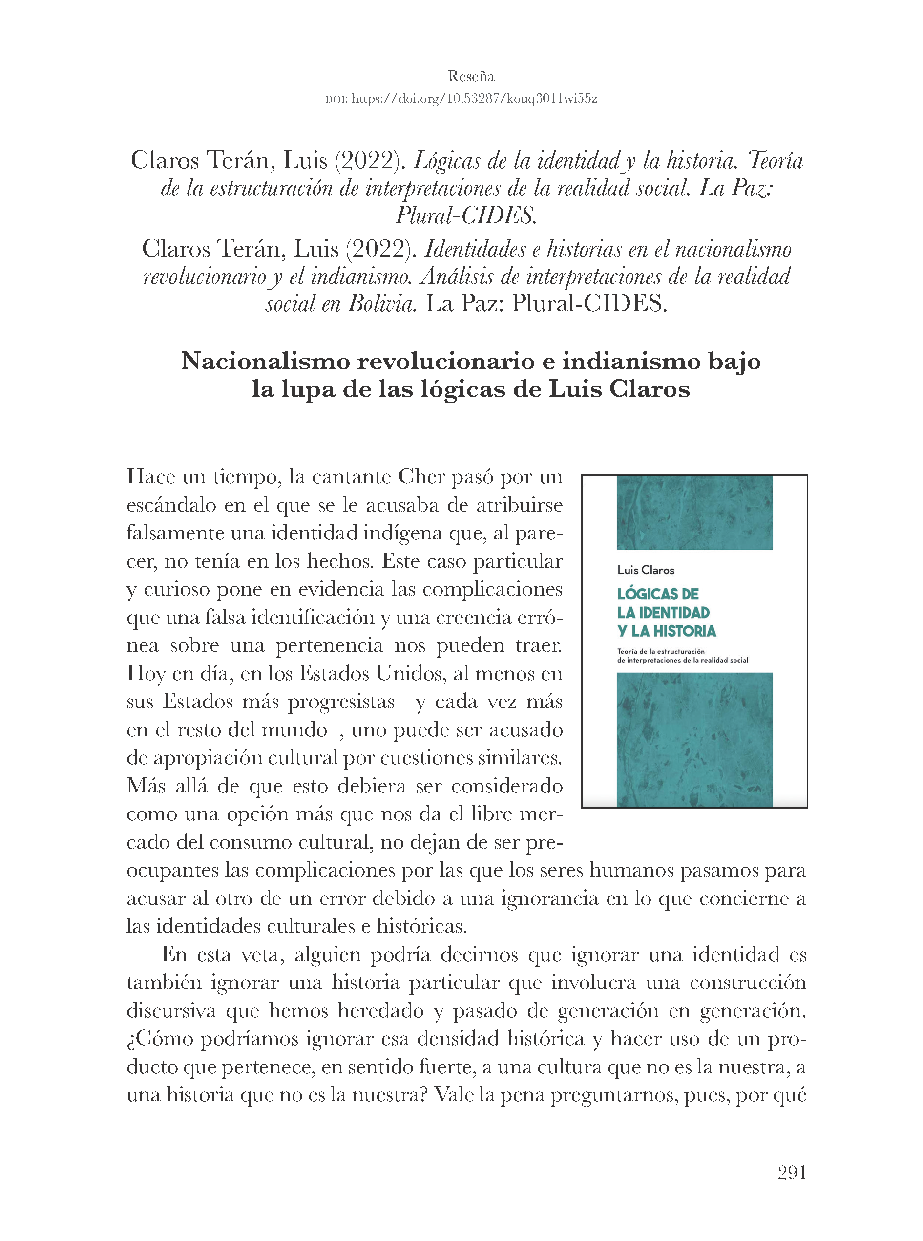 Nacionalismo revolucionario e indianismo bajo la lupa de las lógicas de Luis Claros